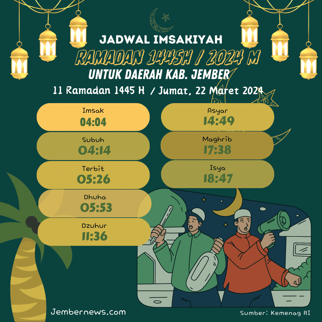 • Jadwal Waktu Imsak dan Maghrib di Jember 1445H, Jumat 22 Maret 2024
